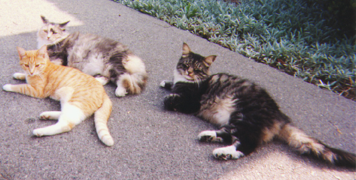 Well, technically, I know they're cats, but they used to be kittens not too long ago, so I can still call them kittens! Their names are Gracie, Buddy, and Ginger. Gracie is the one at the top left, Buddy is the one on the right, and Ginger is just below Gracie. I love my kittens so much!