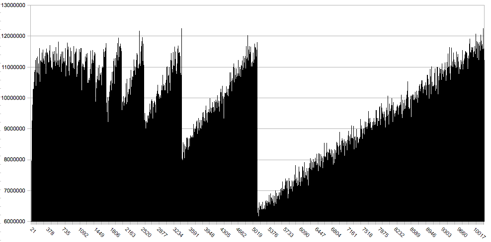 The 2048, 5120, 10240 make sense; the peaks around 1700, 2548, 3407 less so. Any ideas?