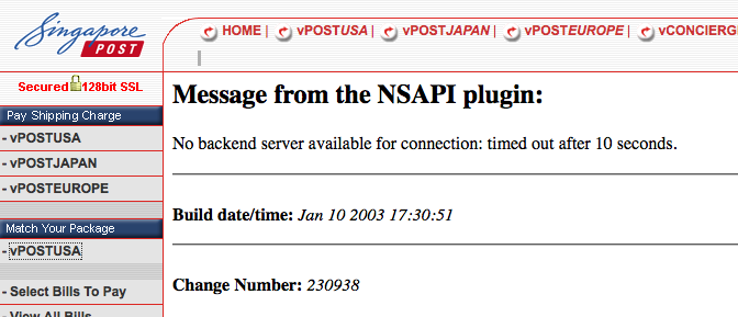 I ordered a netbook from the States (cheaper there than here), and tried vPost for the international shipping. They received the netbook and when I tried to pay for it, I get the following massive fail...